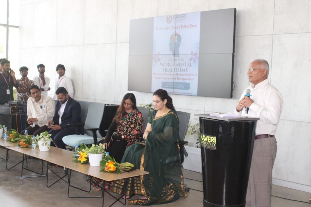 The session began with a warm address by Prof. V. Praveen Rao, Vice-Chancellor of Kaveri University, who highlighted the vital role universities play in fostering both intellectual and emotional growth. He encouraged students to prioritize self-care, empathy, and mental wellness as integral parts of their academic journey.