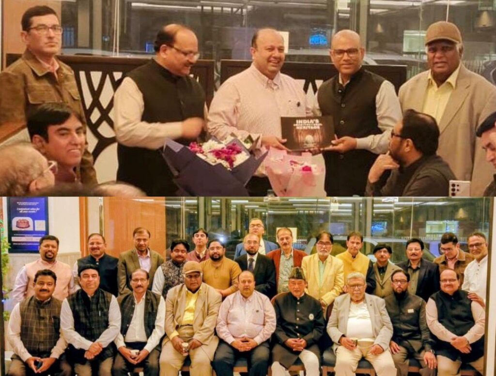 Engineer Mohammed Abdul Bari, Chief Growth Officer of MASAH Specialized Construction Company, Saudi Arabia, presented a copy of the book Indian Architectural Heritage by KN Wasif, published in collaboration with Engineer Muhammad Abdul Nayeem, Chairman of MASAH Construction Company. Renowned poet Iftikhar Raghib also presented his poetry collection to the guest.
